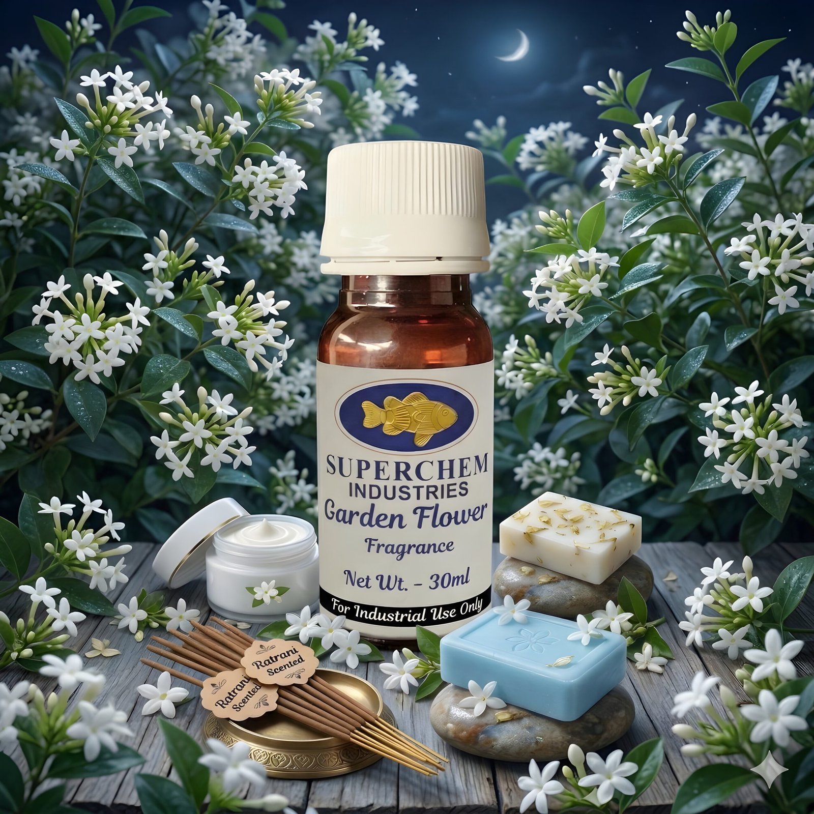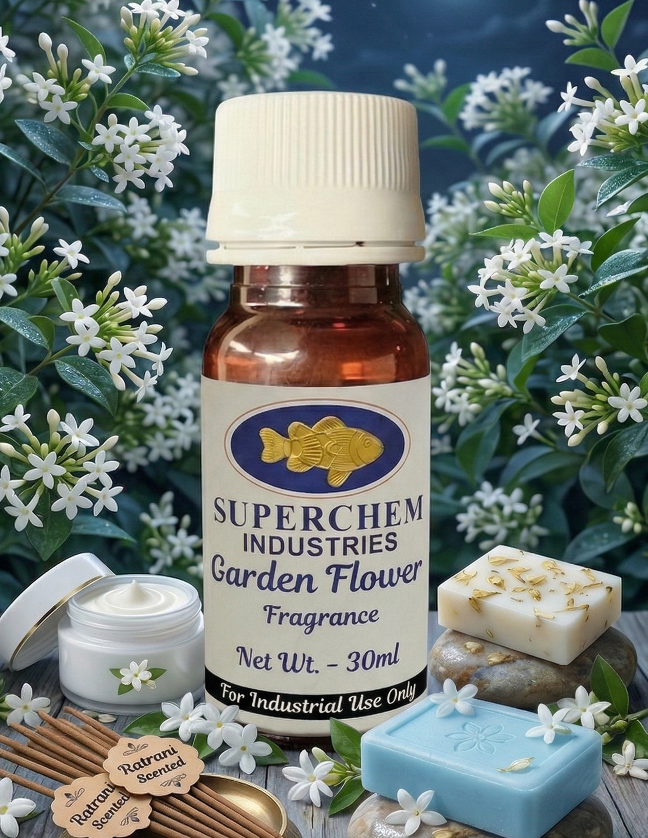 At Superchem Industries, our Garden Flower Fragrance is a vibrant recreation of nature in full bloom. It captures the dew-kissed essence of mixed petals and green stems, providing a multi-layered aromatic experience that is both uplifting and deeply calming.
