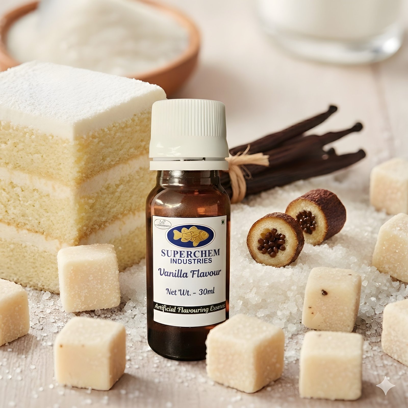 At Superchem Industries, our Vanilla Flavour is the gold standard of aromatic foundations. We have refined this profile to deliver a “creamy-warmth”—a sophisticated blend of woody undertones and sweet, comforting top notes that elevate the entire flavour perception of your product.